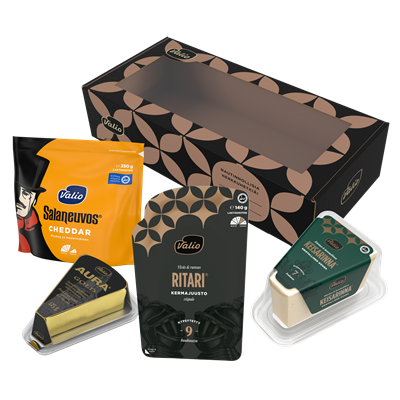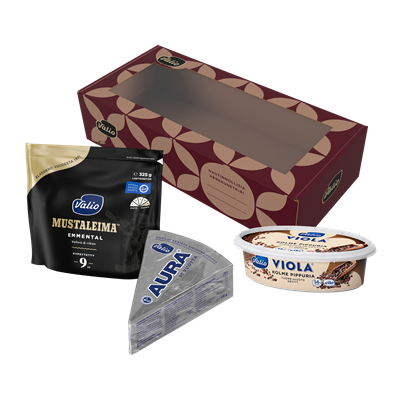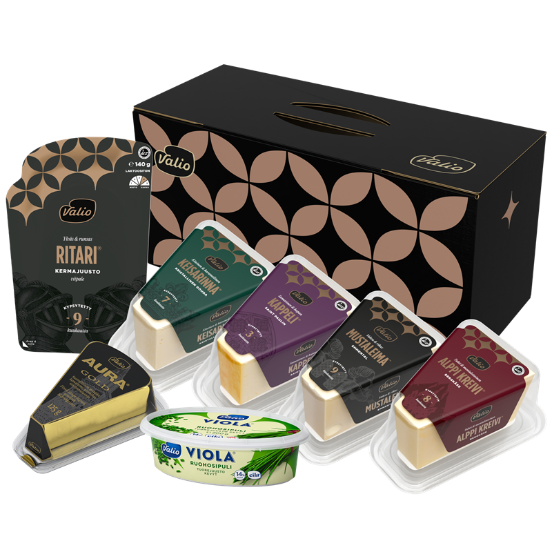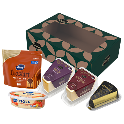 Joulun juustoisin lahja, josta riittää nautittavaa pidemmäksi aikaa. Valio salkku juustopakkaus on laadukas mutta vaivaton lahja, joka sopii mainiosti myös joulun ajan tuliaiseksi. Lahjapakkaus sisältää... seitsemän huolella valittua juustoa: Valio Keisarinna®, Valio Kappeli®, Valio Alppi Kreivi®, Valio Mustaleima™, Valio Ritari® viipale, Valio AURA® Gold ja Valio Viola® ruohosipuli tuorejuusto. Juustojen seuraan sopivat esimerkiksi Valio glögi, piparit, hedelmät ja hillokkeet. Joulun 2025 kausituote. Näytä lisää