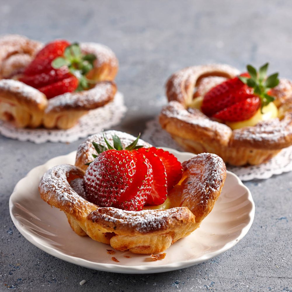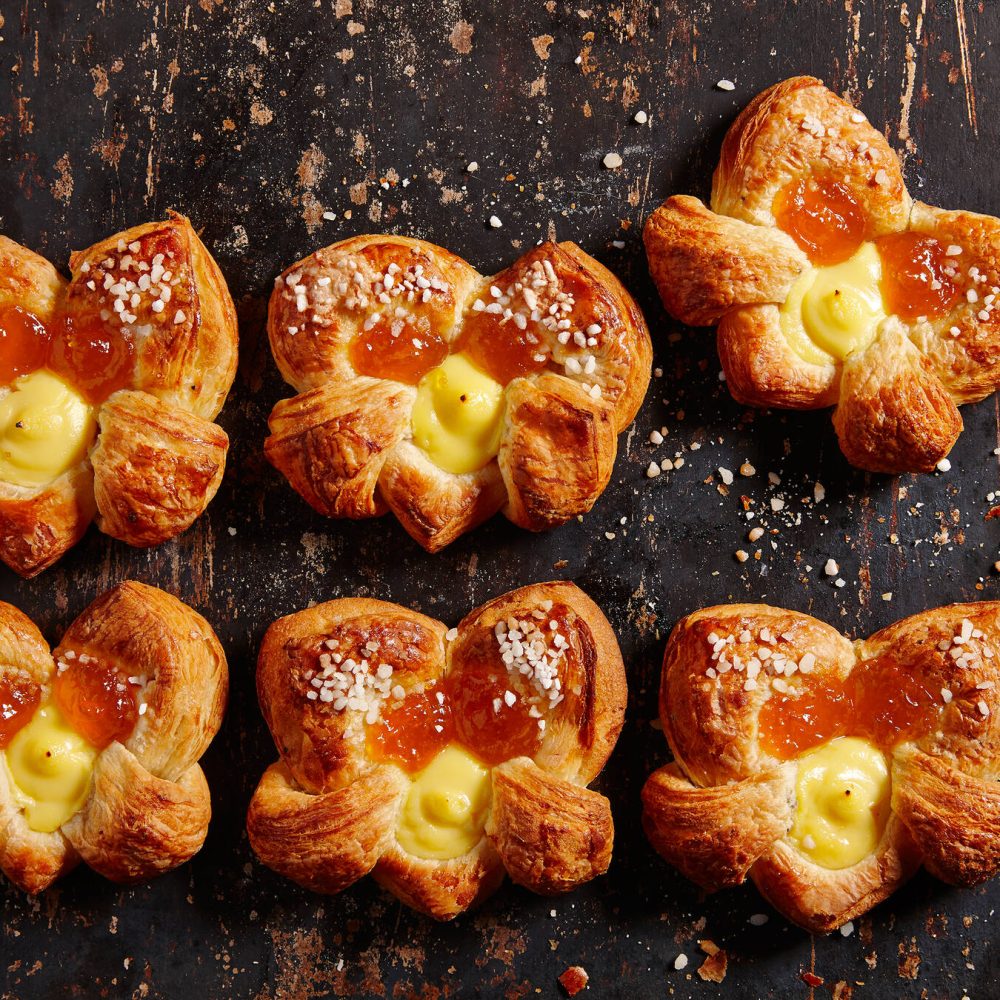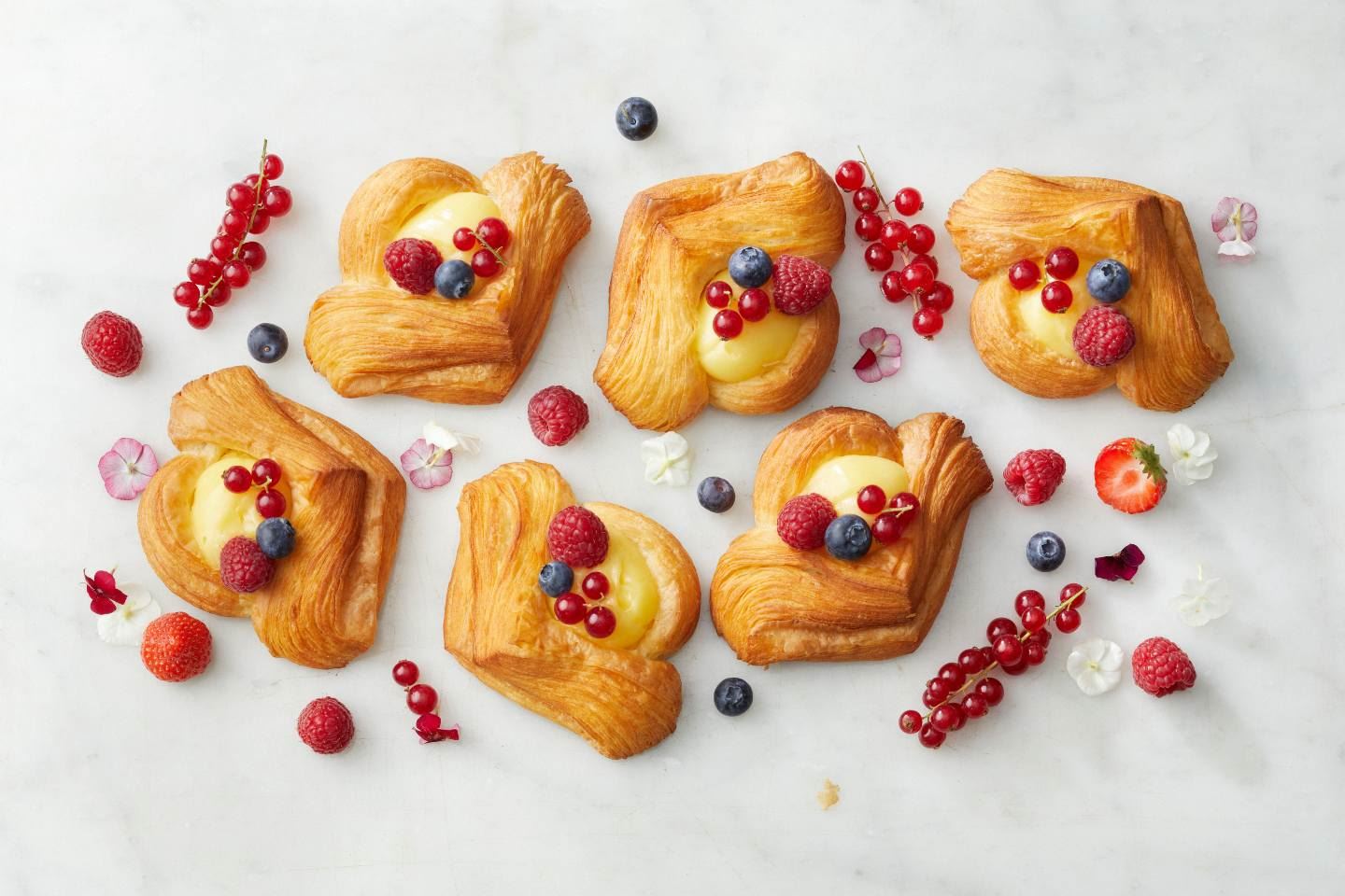 Kokeile myös leipoa itse keväinen wiener uudella reseptillä. Tässä mallissa lehtevyys tulee upeasti esille ja täyte pysyy hienosti paikallaan. Herkullinen, lehtevä wienertaikina syntyy tietenkin Valion voista ja kaulitsemisessa kannattaa käyttää Valio kaulintavoita. Muodoillakin voi leikitellä, katso myös ohjeet erilaisiin wiener-muotoihin. Viimeistele wienerit kirkaskuumahyytelöllä, jolla saat tuotteelle houkuttelevuutta ja lisää hyllyikää.