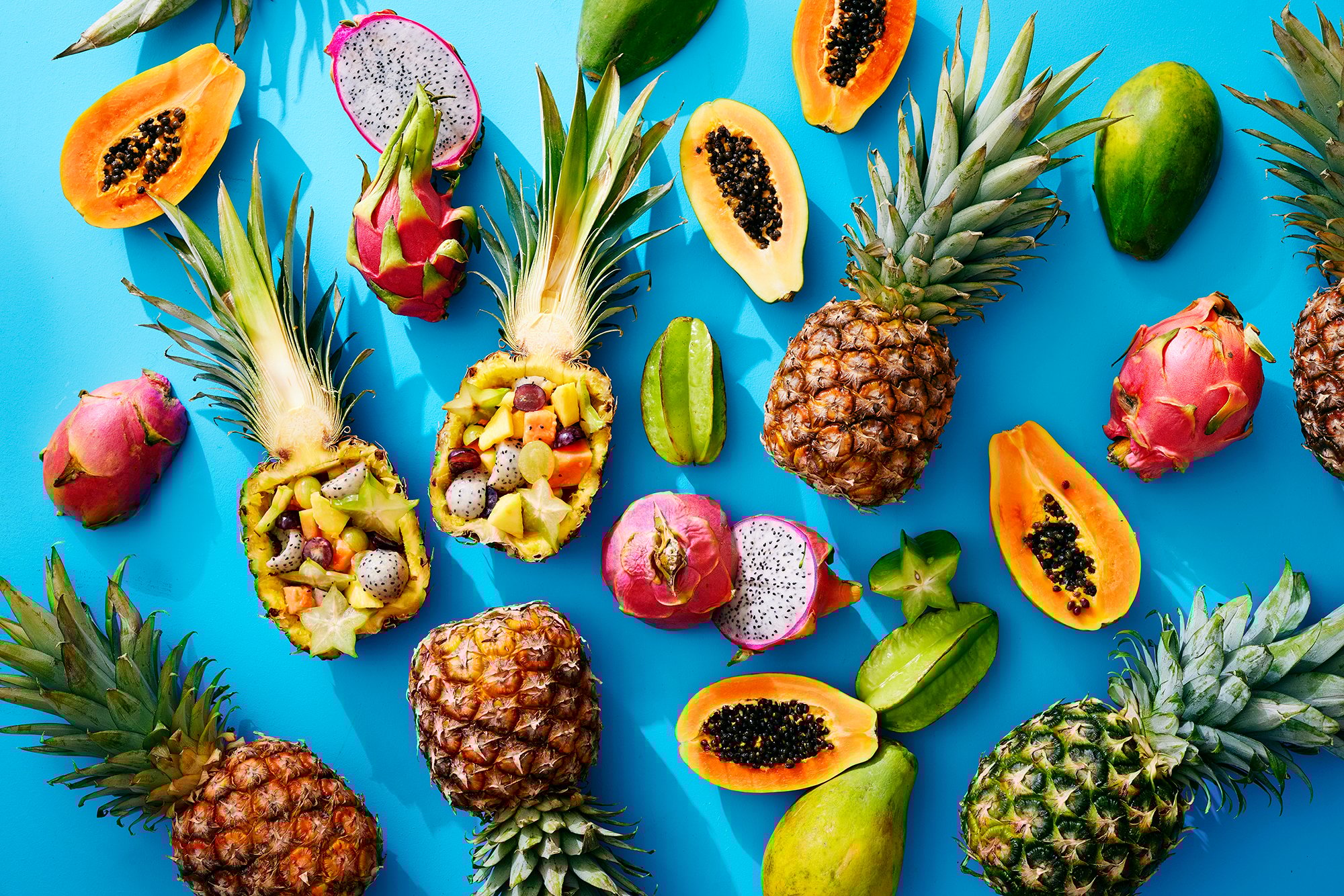 ananas, karambola, mandariini, sitruuna, miniananas, passionhedelmä, pitaija, rambutani, verigreippi, mangoldinverso, parsakaali, pimientos de padron -paprikat, bataatti