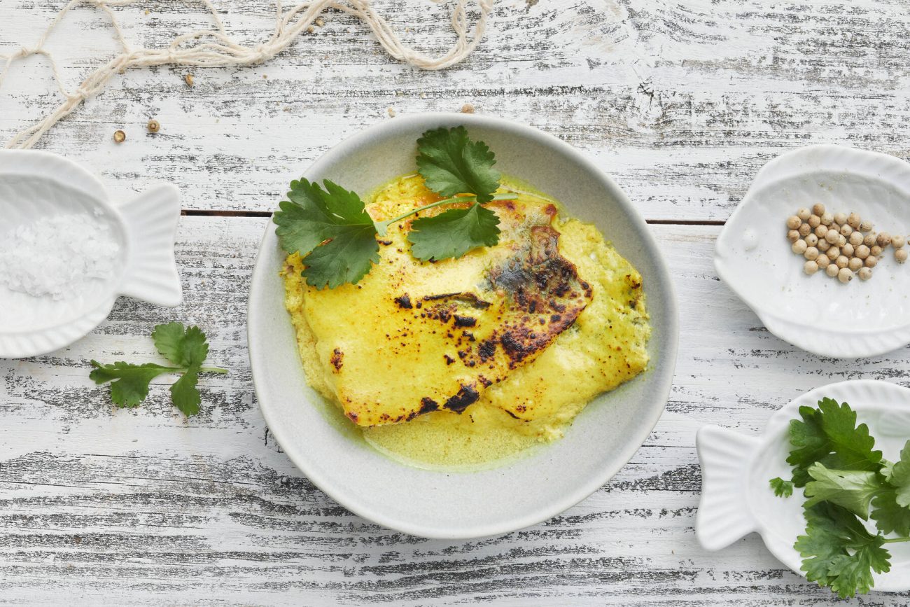 - Sekoita jogurtti, rypsiöljy, valkosipulit ja mausteet sekaisin. Kaada silakoiden päälle 1/1 GN vuokaan. Paista 185 °C uunissa n. 25-30 min. Koristele tuoreella korianterilla.
