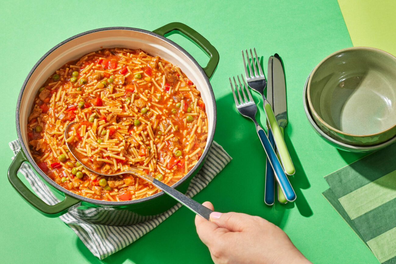 - Lisää spaghetti sekä kasvikset. Keitä muutama minuutti. Lisää Gold&Green Delikaura, hauduta kypsäksi. Tarkista maku ja rakenne.