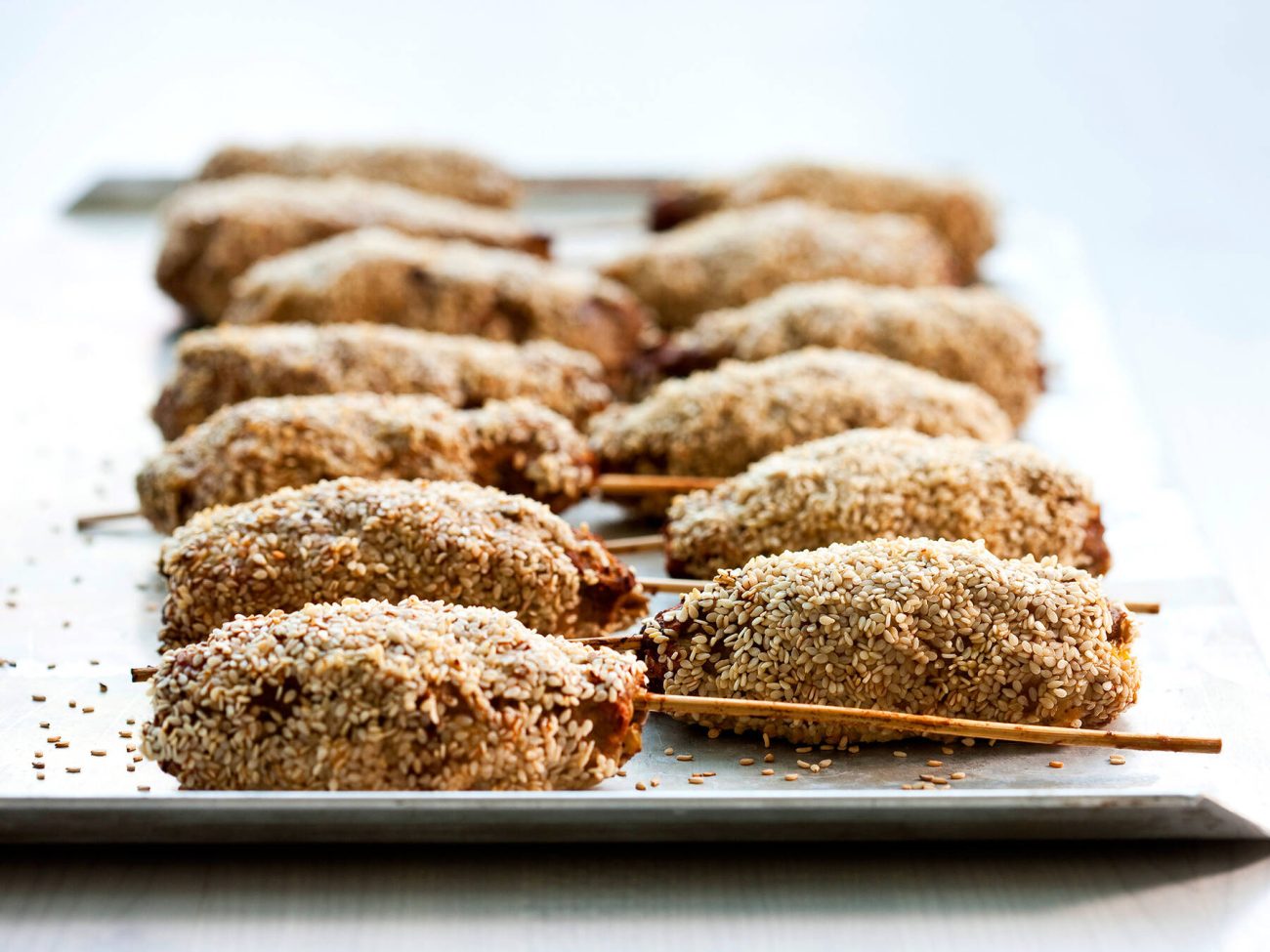 - Pyörittele valmiit vartaat seesaminsiemenissä.