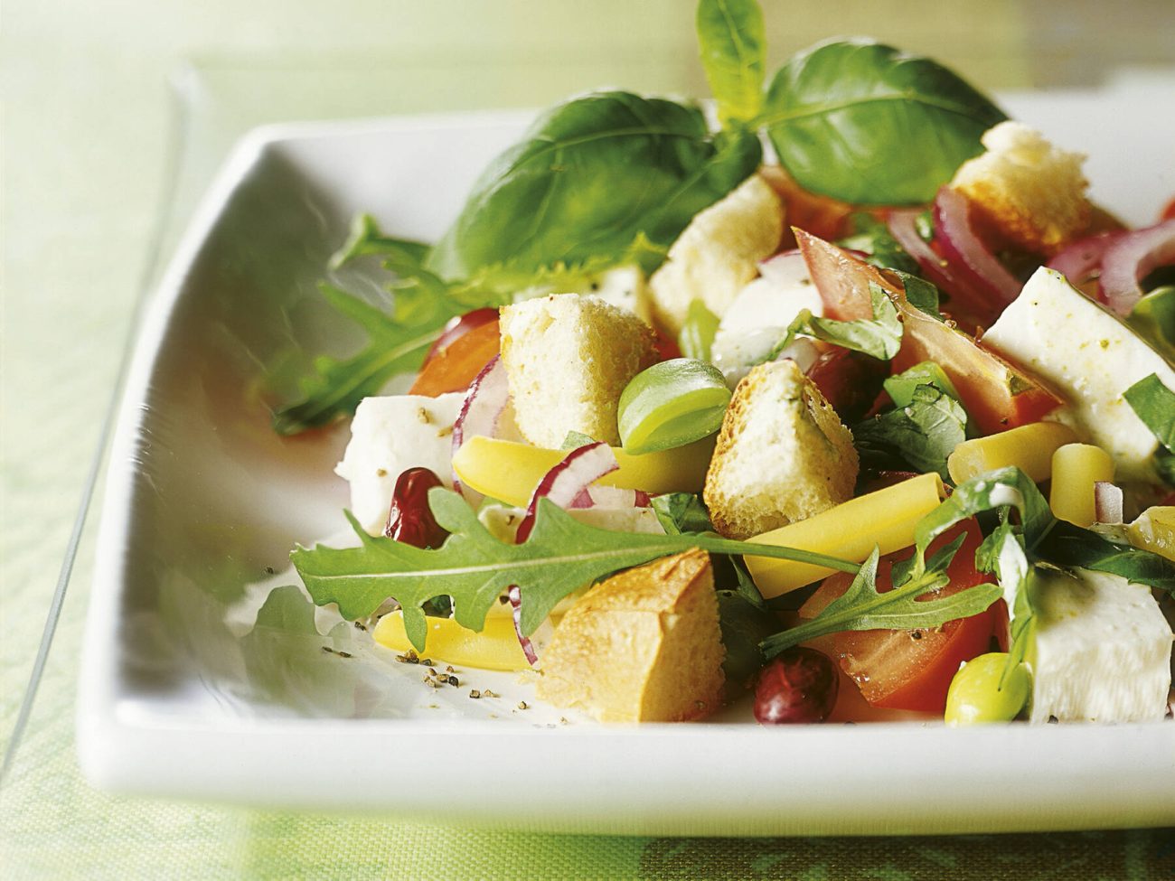 - Koristele salaatti basilikanlehdillä. Sekoita salaatinkastike. Tarjoa salaatti heti kastikkeen kanssa.
