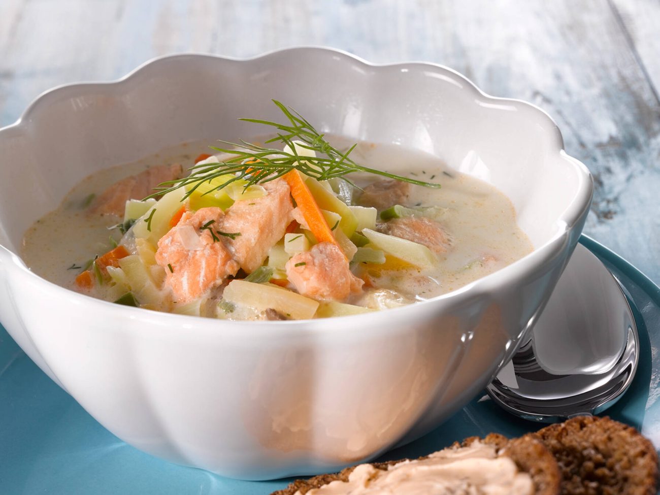 - Mausta keitto suolalla, valkopippurilla ja tillillä.