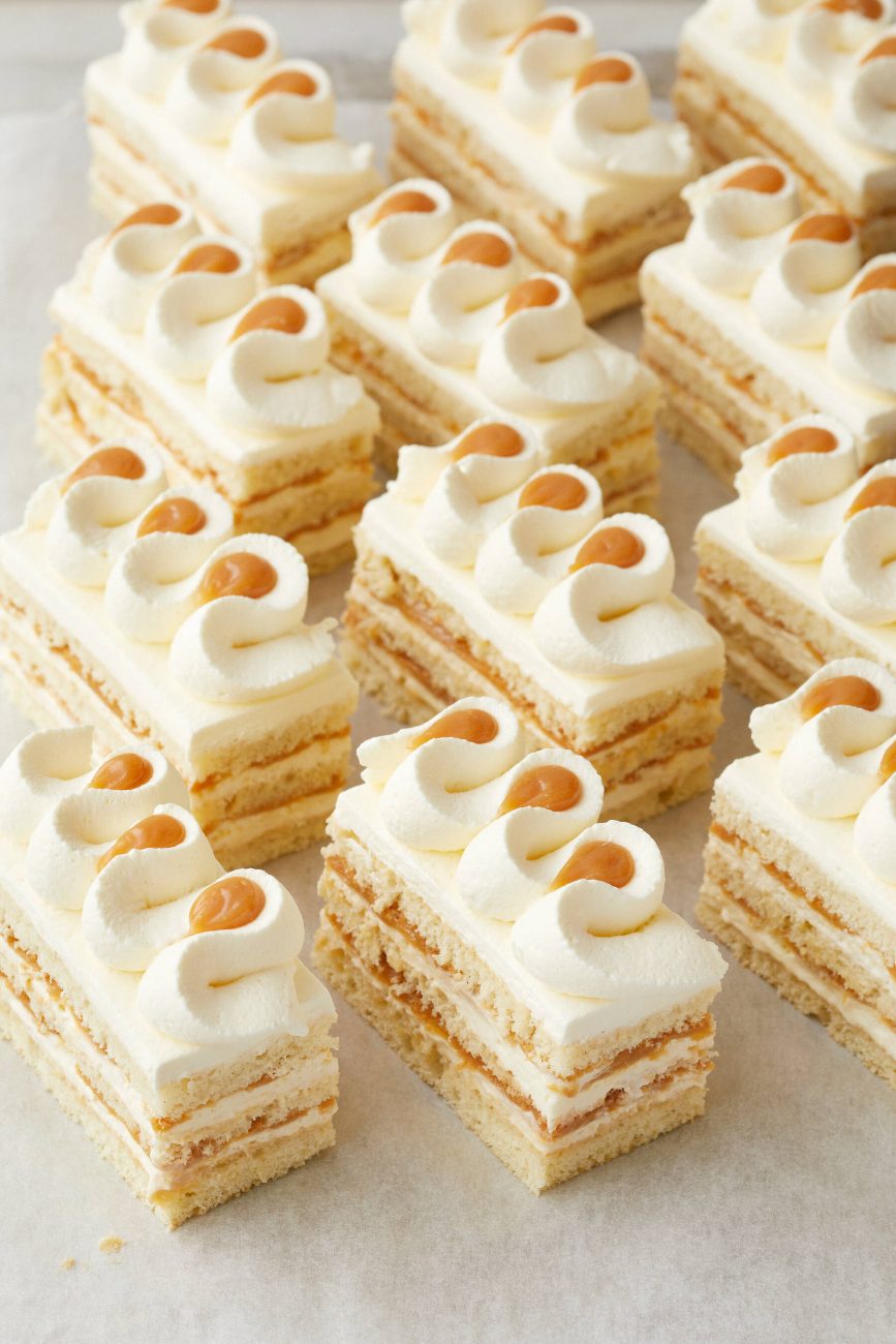 - Pohjaaminen. Kostuta vetopohja sokerivedellä. Levitä kermavaahtoa ja pursota kinuskitäytettä raitoina väliin. Pohjaa kahdella täyttövälillä. Anna tekeytyä seuraavaan päivään.