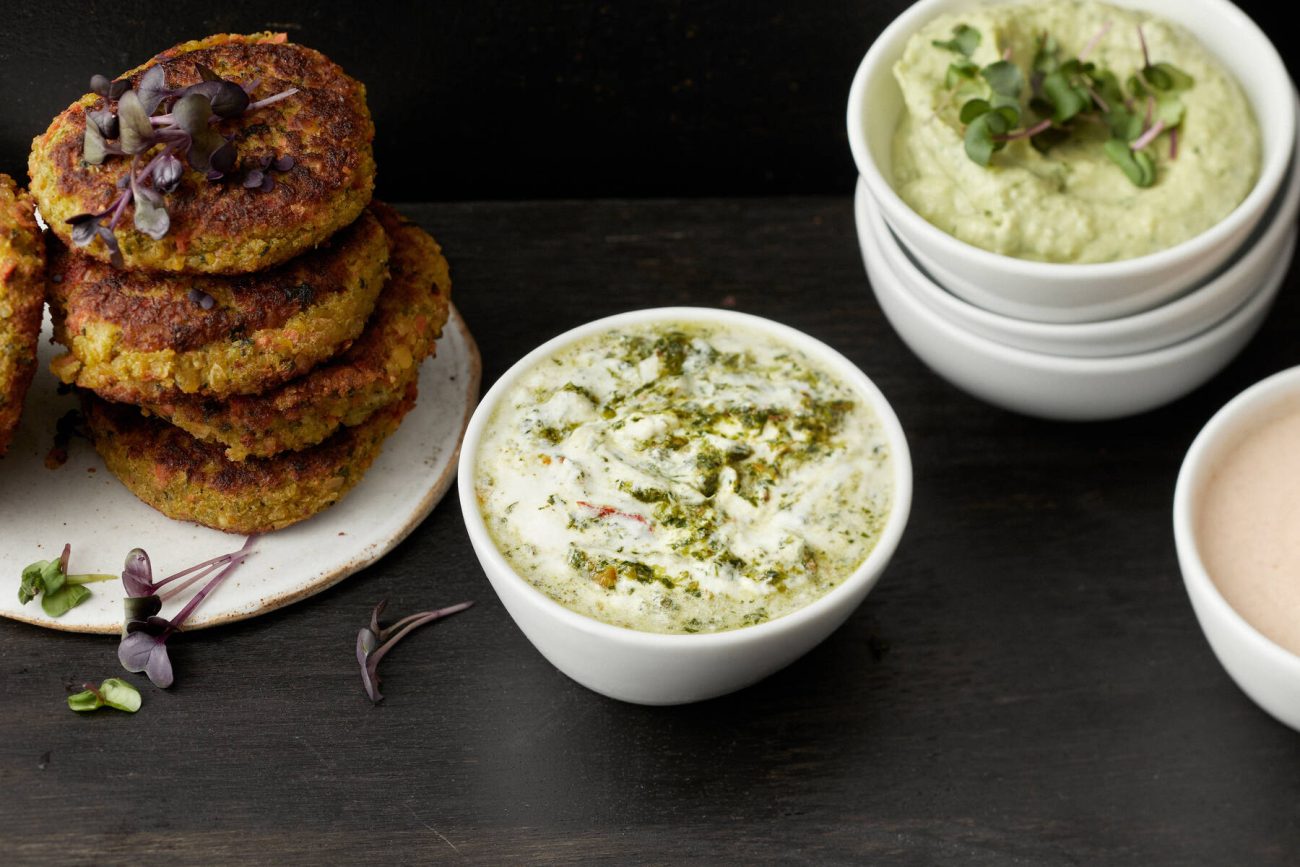 - Hienonna lehtipersilja, oregano, chili sekä valkosipuli punaviinietikan ja oliiviöljyn kanssa kutterissa. Sekoita massa kermaviilin joukkoon ja mausta suolalla ja mustapippurilla.