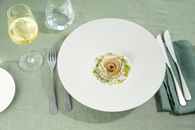 - Paista kukkakaalin keskeltä leikatut viipaleet voissa pehmeiksi, viimeistele timjaminoksalla ja suolalla.