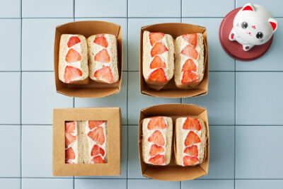 - Lisää toiseen väliin loppu vaniljatäyte sekä kohmeisina viipaloidut mansikat.