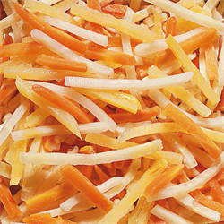 - Höyrytä vihannessuikaleita pakkauksen ohjeen mukaan ja jäähdytä. Suikaloi tuore fenkoli. Sekoita jäähdytetyt vihannessuikaleet, fenkolisuikaleet, raejuusto, crème fraîche ja sitruunan mehu. Mausta suolalla ja rouhitulla mustapippurilla. Tarjoile kylmänä lisukkeena tai leipien täytteenä.