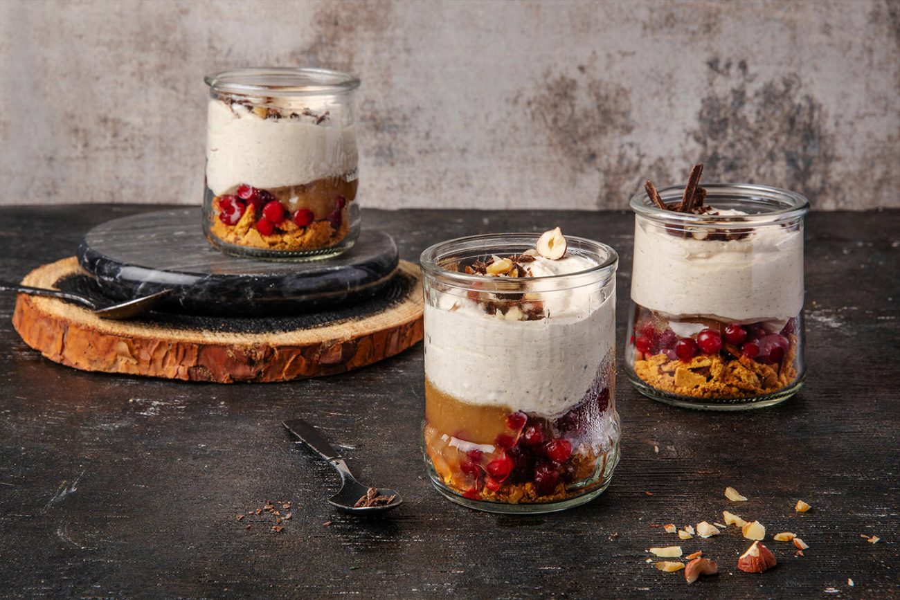 Helppo ja herkullinen klassikkojälkiruoka maistuu jouluna piparkakulta, täyteläiseltä kinuskilta ja kirpeiltä puolukoilta. Kokoa puoloffeet annoskulhoihin tai isoon tarjoiluvuokaan joululounaalle.