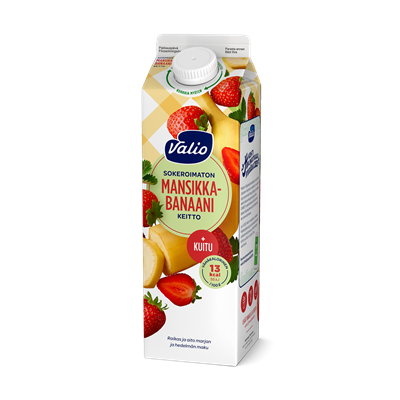 Valio sokeroimatonta mansikka-banaanikeittoaSokeroimaton Valio mansikka-banaanikeitto + kuitu on raikas, vähäkalorinen vaihtoehto välipalaksi. Runsaskuituisen keiton valmistukseen käytetään kokonaisia…