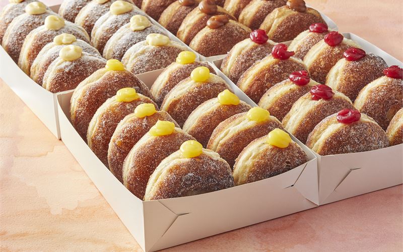 - Valmista taikinasta 70 g:n painoisia pyöreitä munkkeja. Nostata munkit.