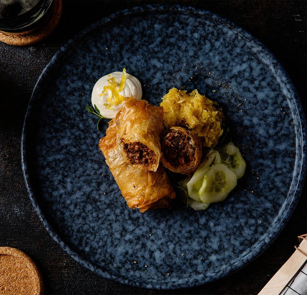 Valio Aimon Street Food -teeman jouluruokia Petteri lähti suunnittelemaan kansainväliseen kokemukseensa nojaten. ”Annokset on suunniteltu niin, että ne tarjoillaan kioskilta eli katukeittiöstä. Napataan setti mukaan ja syödään pystypöydässä tai lennosta kävellen. Reseptit pohjautuvat autenttisiin makuihin, mutta niitä on miksattu mielivaltaisesti.” Ruoat sopivat erinomaisesti siis sormisyötäviksi tai talviterassilla tarjottaviksi.